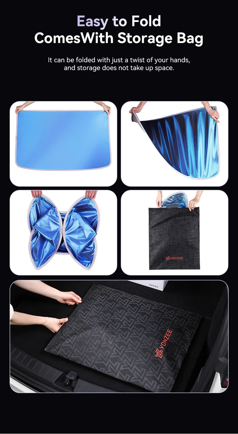 Made of durable non-woven fabric, it provides excellent UV protection, reduces heat inside the cabin, and offers a more comfortable driving experience. Designed specifically for Tesla Model 3 Highland and Model Y, this sunshade installs easily and can be removed within seconds.